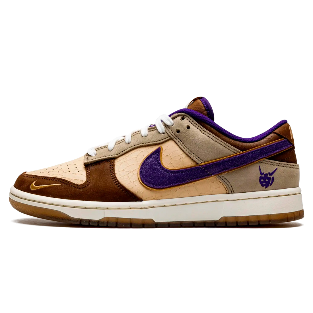 O Nike Dunk Low "Setsubun" apresenta uma paleta de cores única, com uma base marrom...