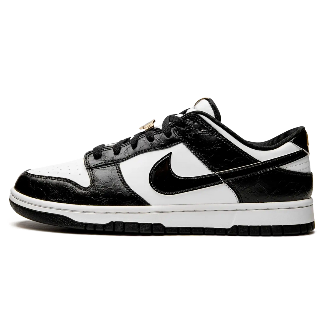 O Nike Dunk Low Feminino "Black White Metallic" oferece uma abordagem minimalista com toques distintos....