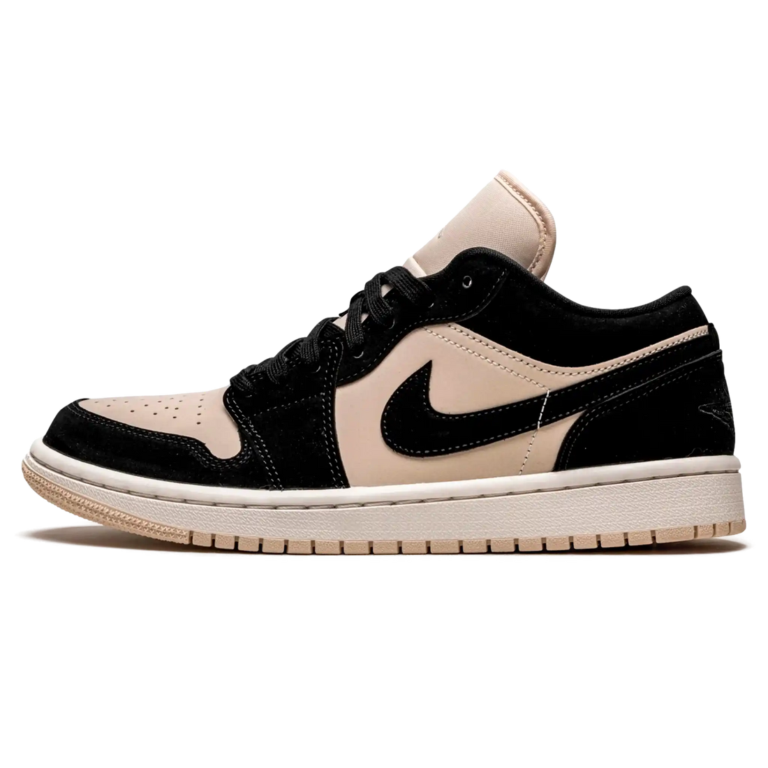 O Air Jordan 1 Low Feminino "Guava Ice" Bege / Preto apresenta um cabedal em couro...